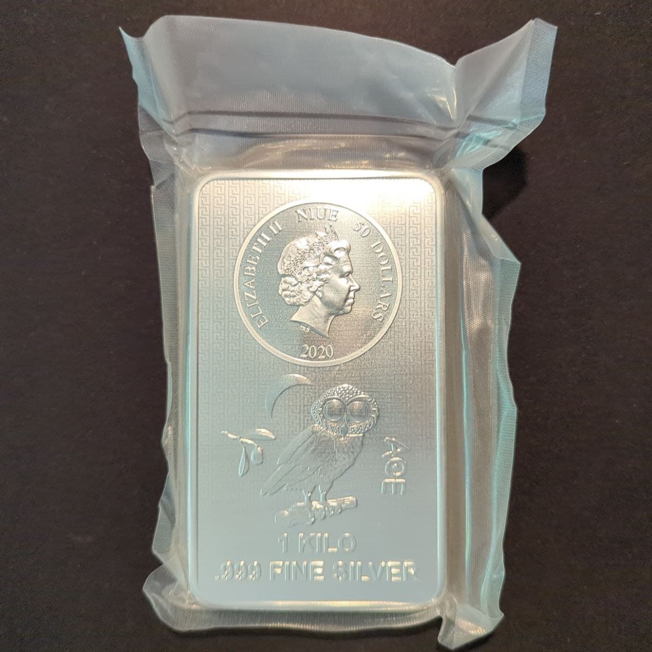 2020 1 KILO NIUE ATHENIAN OWL MINTED 999.9 SILVER BAR 50 DOLLARS