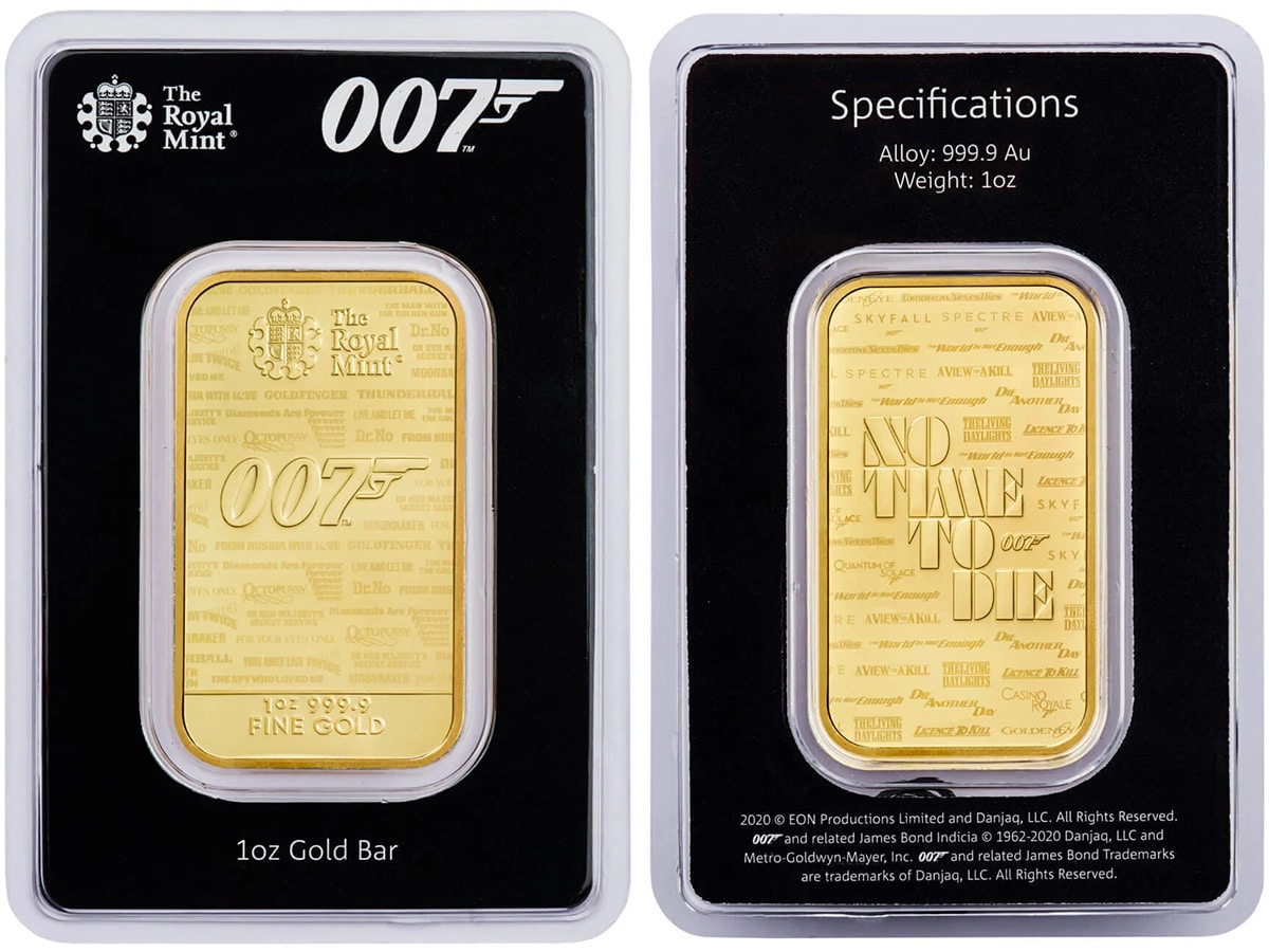 2020 1oz James Bond 007 No Time To Die 999.9 Fine Gold Bar